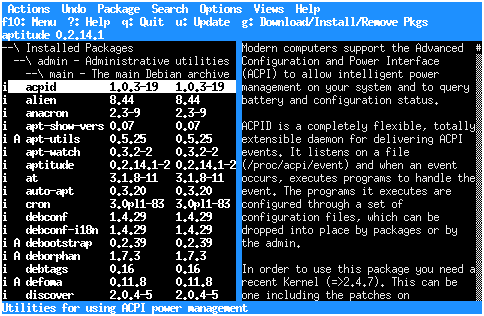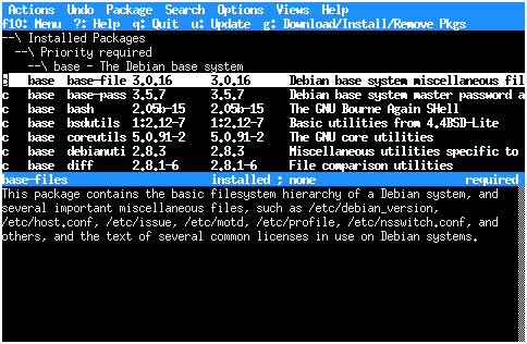 Tämä teema saa aptituden näyttämään ja käyttäytymään suunnilleen kuin vanhempi dselect-pakettienhallintaohjelma: